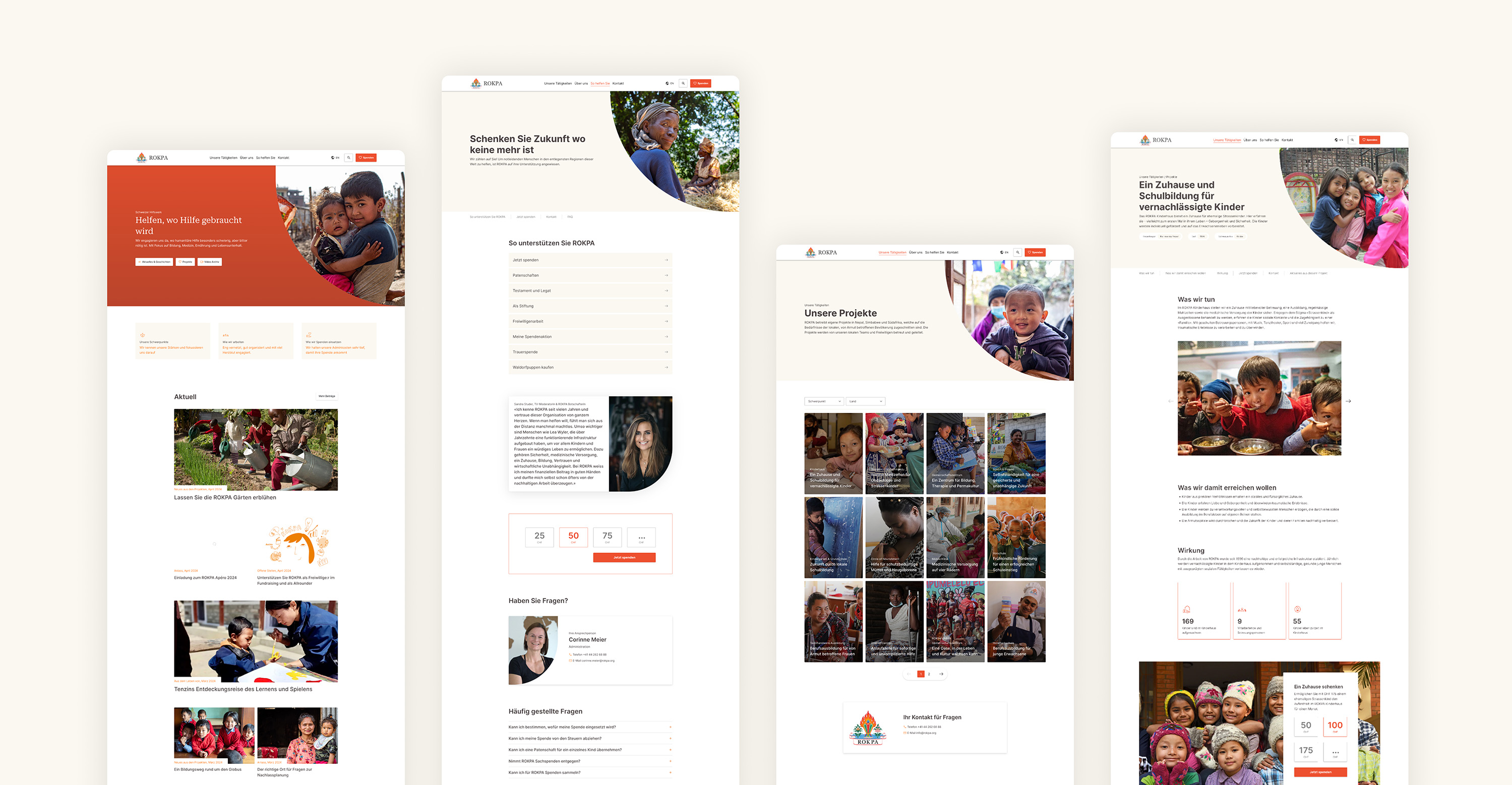 With the clear content strategy in focus, we began the visual design, translating Rokpa's existing corporate design into a modern design system. Rokpa actively participated in this process and provided constructive feedback. Colors, fonts, icons and layouts were optimized for different screen sizes. A prototype allowed all stakeholders to get involved and give structured feedback, which further refined the design.